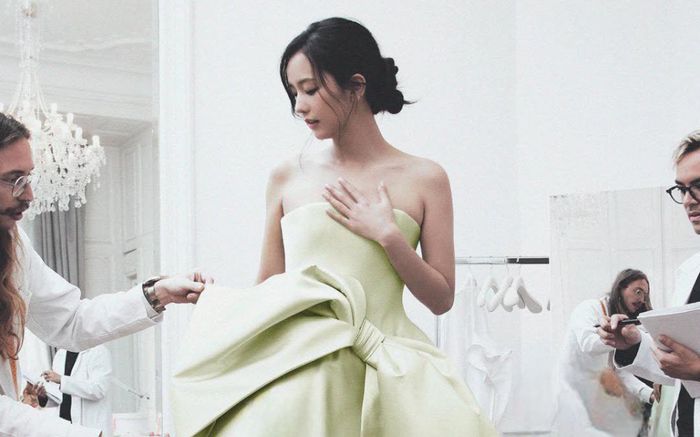 Dù chưa hoàn thiện toàn bộ diện mạo, song chiếc váy màu xanh bơ pastel với điểm nhấn nơ to bản mà Dior dành cho Jisoo đã gây ấn tượng mạnh mẽ. Nhiều ý kiến cho rằng, đây có thể là bộ trang phục đẹp nhất của Jisoo trong những show Dior từ trước đến nay.