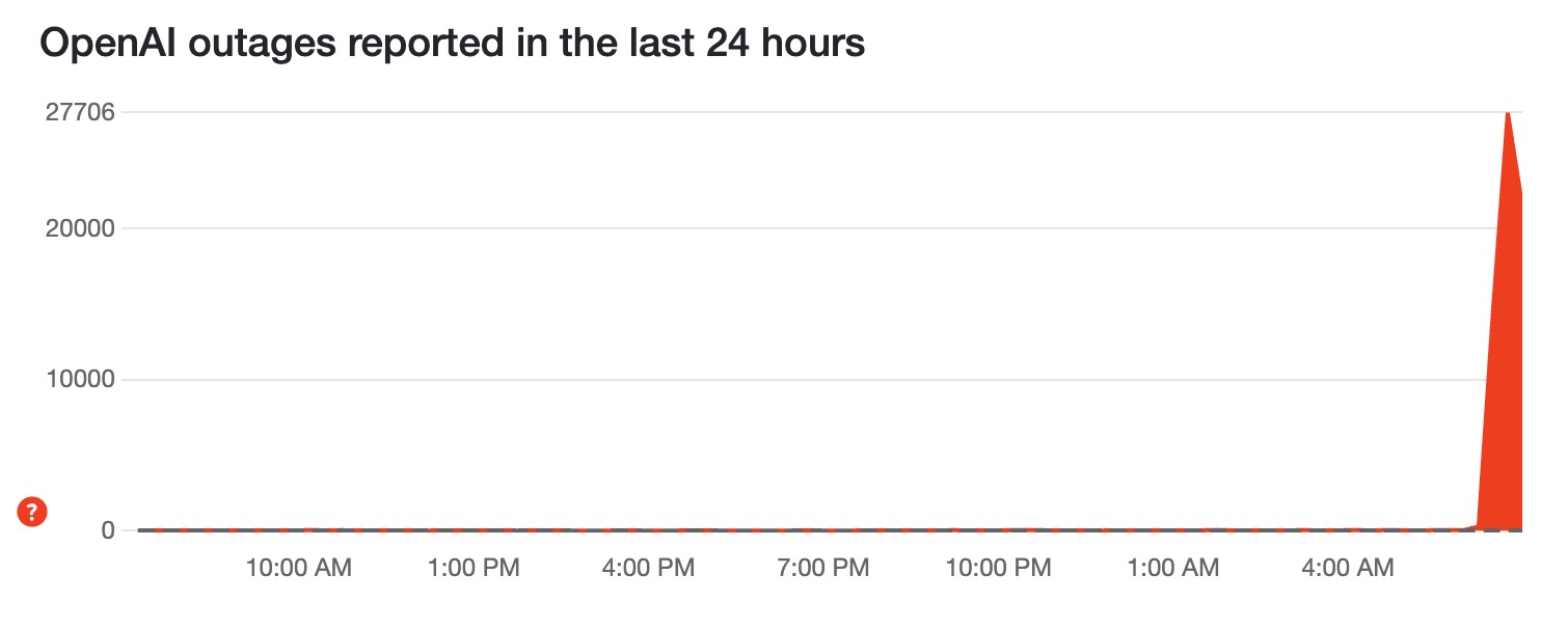 Thống kê từ Down Detector, nền tảng theo dõi các sự cố dựa trên báo cáo của người dùng, đã có một lượng lớn báo cáo về việc người dùng không thể sử dụng ChatGPT.
