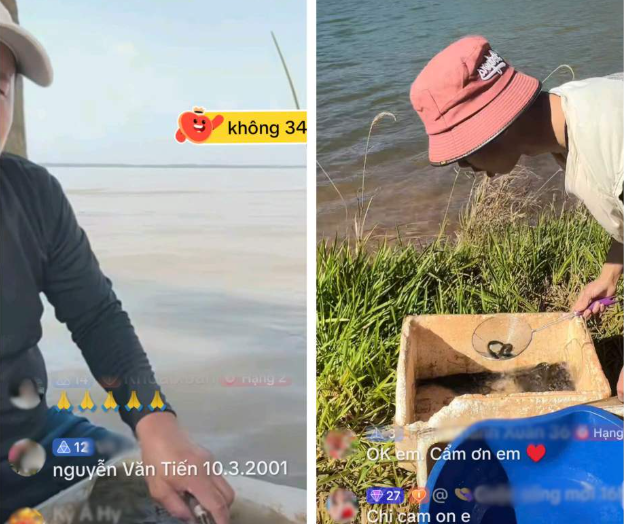 Theo ghi nhận, các chủ tài khoản thường phát trực tiếp tại khu vực bờ sông hoặc hồ nước, chuẩn bị sẵn nhiều thùng cá chép. Người xem có nhu cầu thả cá sẽ tặng quà ảo trên livestream, đồng thời để lại tên tuổi và lời nhắn.