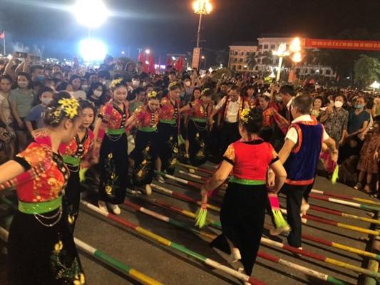 Đặc sắc nhất đêm nghệ thuật là màn trình diễn múa xòe Thái với sự tham gia của 2.022 diễn viên chuyên và không chuyên đến từ các xã, phường, trường học đã tạo nên sự gắn kết cộng đồng. Những nét tinh tế, điêu luyện trong từng bước vũ đã làm say lòng biết bao nhiêu người, thể hiện sống mãnh liệt cùng nét đẹp lan tỏa từ mỗi điệu xòe- loại hình nghệ thuật Xòe Thái đặc sắc được ghi danh vào danh sách Di sản Văn hóa phi vật thể đại diện của nhân loại. Đó chính là niềm tự hào về bản sắc văn hóa và phát huy tinh thần đoàn kết giữa các dân tộc, gắn kết ý thức, trách nhiệm của cả cộng đồng trong việc gìn giữ, phát huy bản sắc văn hóa các dân tộc Việt Nam nói chung và người Thái nói riêng. Sôi nổi, ấn tượng không kém là phần múa sạp và trình diễn những nét văn hóa các dân tộc Yên Bái tại phố đi bộ Hào Gia và tuyến đường Điện Biên.