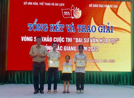 Sở VHTTDL, Sở GD&ĐT tỉnh Bắc Giang vừa tổ chức tổng kết và trao giải vòng sơ khảo Cuộc thi Đại sứ Văn hóa đọc tỉnh Bắc Giang năm 2022. Ban tổ chức đã nhận được 66.849 bài dự thi của 228 trường thuộc 9 huyện, thành phố trên địa bàn Bắc Giang, các tác phẩm dự thi thể hiện dưới dạng bài viết, video clip, tranh vẽ được đầu tư công phu, sáng tạo cả nội dung và hình thức.