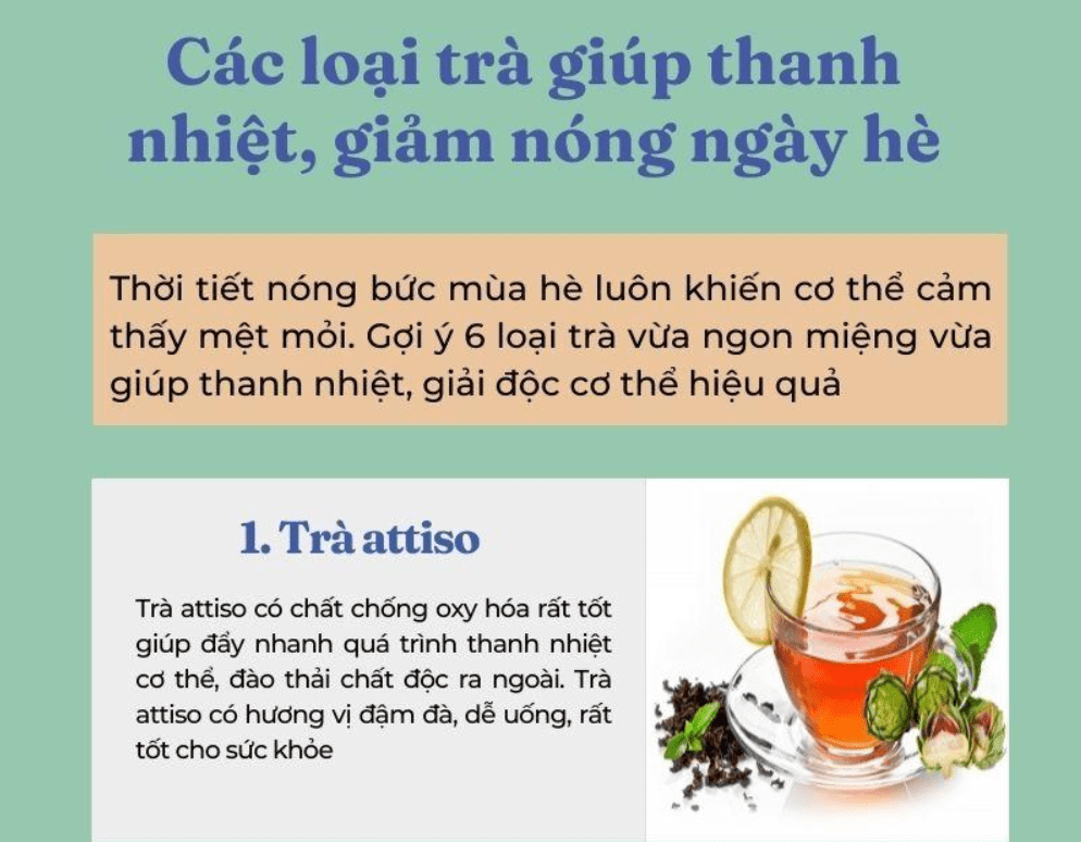Thời tiết nóng bức mùa hè luôn khiến cơ thể cảm thấy mệt mỏi. Gợi ý 6 loại trà vừa ngon miệng vừa giúp thanh nhiệt, giải độc cơ thể hiệu quả.