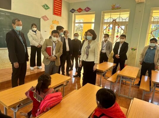 Đoàn công tác của Sở Y tế tỉnh Phú Thọ và UBND xã Pà Cò kiểm tra thực tế tại Trường Tiểu học và THCS Hang Kia B. Ảnh: Cổng thông tin điện tử Phú Thọ