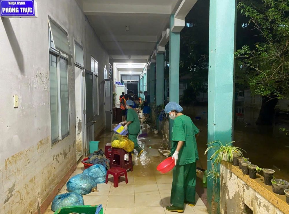 Hai bệnh viện này là cơ sở y tế lớn, phục vụ cho hàng chục nghìn người dân trong khu vực bị ảnh hưởng nặng do mưa lũ. Sau nhiều ngày nước ngập sâu, toàn bộ khuôn viên, hành lang, các khoa phòng đều phủ lớp bùn dày, nhiều trang thiết bị y tế bị ẩm, tiềm ẩn nguy cơ ô nhiễm, ảnh hưởng nghiêm trọng đến công tác khám chữa bệnh.
