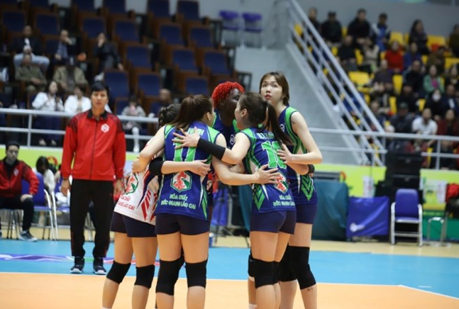 Hóa chất Đức Giang chạm trán LPB Ninh Bình ở giải bóng chuyền vô địch quốc gia. Ảnh: VFV