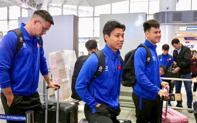 Tuyển Việt Nam lên đường sang Singapore. Ảnh: VFF