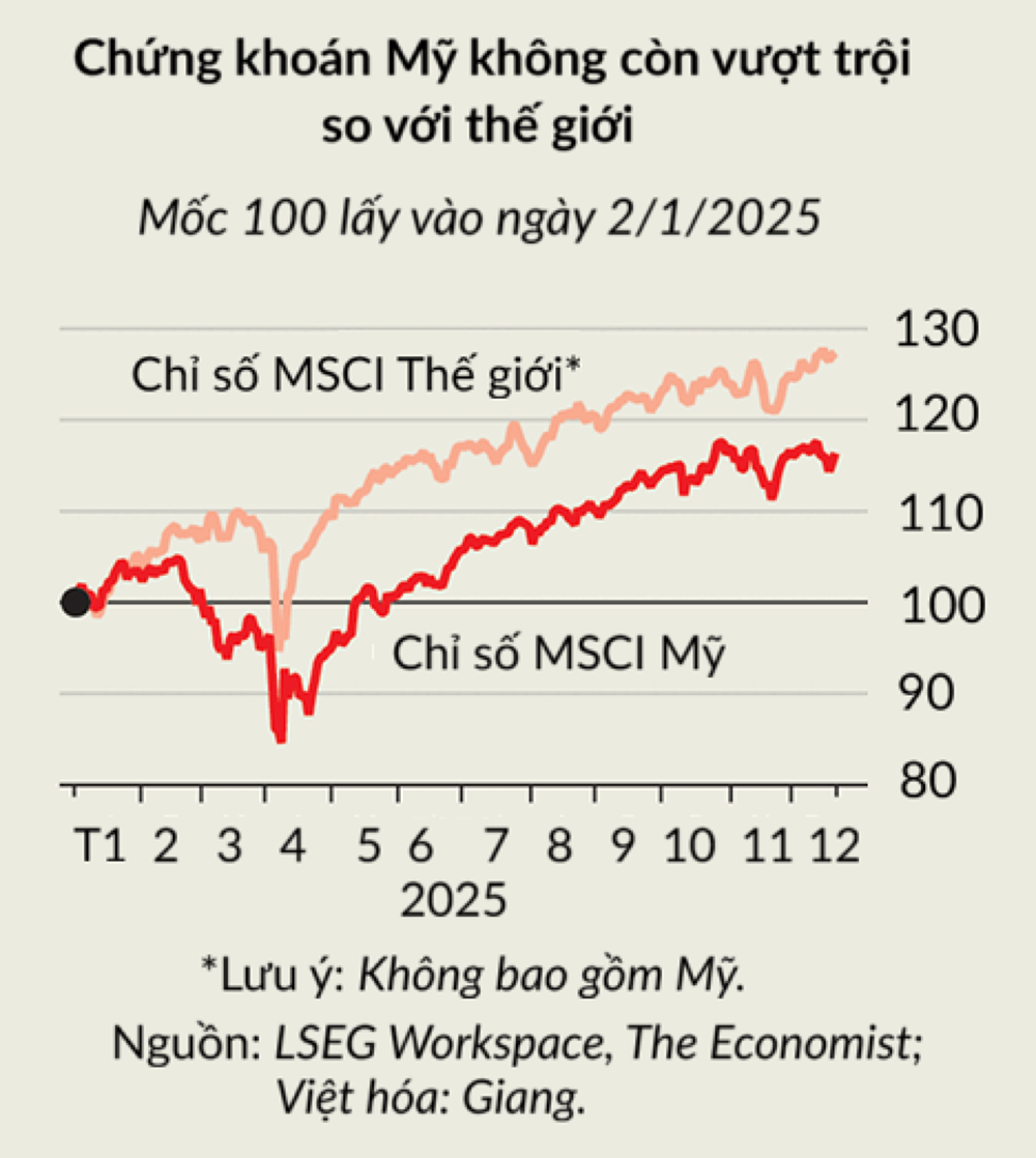 Sang năm 2025, chứng khoán Mỹ không còn giữ vị trí số một, dù nền kinh tế số một thế giới là tâm điểm của cơn sốt AI.