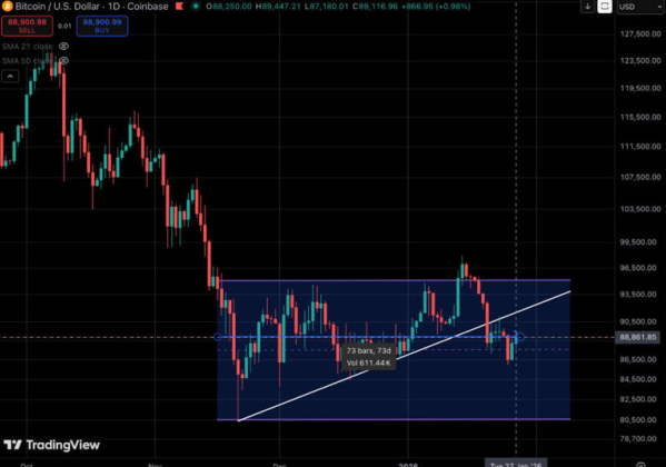 Bitcoin đã duy trì trạng thái đi ngang trong vùng giá từ 80.500 USD đến 95.000 USD suốt 73 ngày. Diễn biến giằng co kéo dài đi kèm mức biến động thấp bất thường, thậm chí còn thấp hơn nhiều tài sản vốn nổi tiếng ổn định như vàng hay bạc.