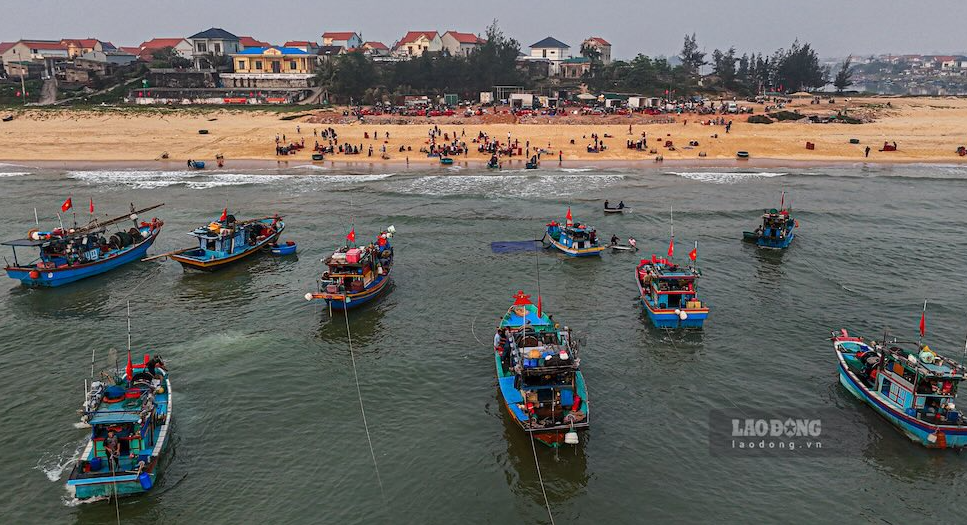 Những ngày này, từ sáng sớm, khu vực biển xã Nam Trạch (tỉnh Quảng Trị) trở nên nhộn nhịp khi nhiều tàu cá trở về sau một đêm khai thác. Từ ngoài khơi, đoàn thuyền hướng rẽ hướng vào bờ, tạo nên khung cảnh lao động đặc trưng của mùa đánh bắt cá nục.