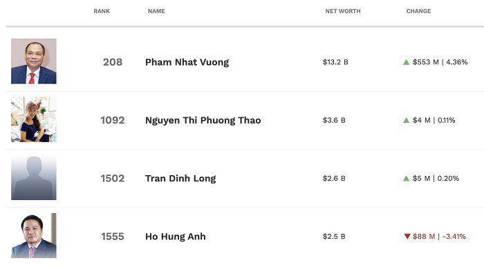 Theo Forbes, tại 15h30, tài sản của ông Vượng vừa tăng thêm 553 triệu USD lên 13,2 tỷ USD, đứng thứ 208 thế giới.