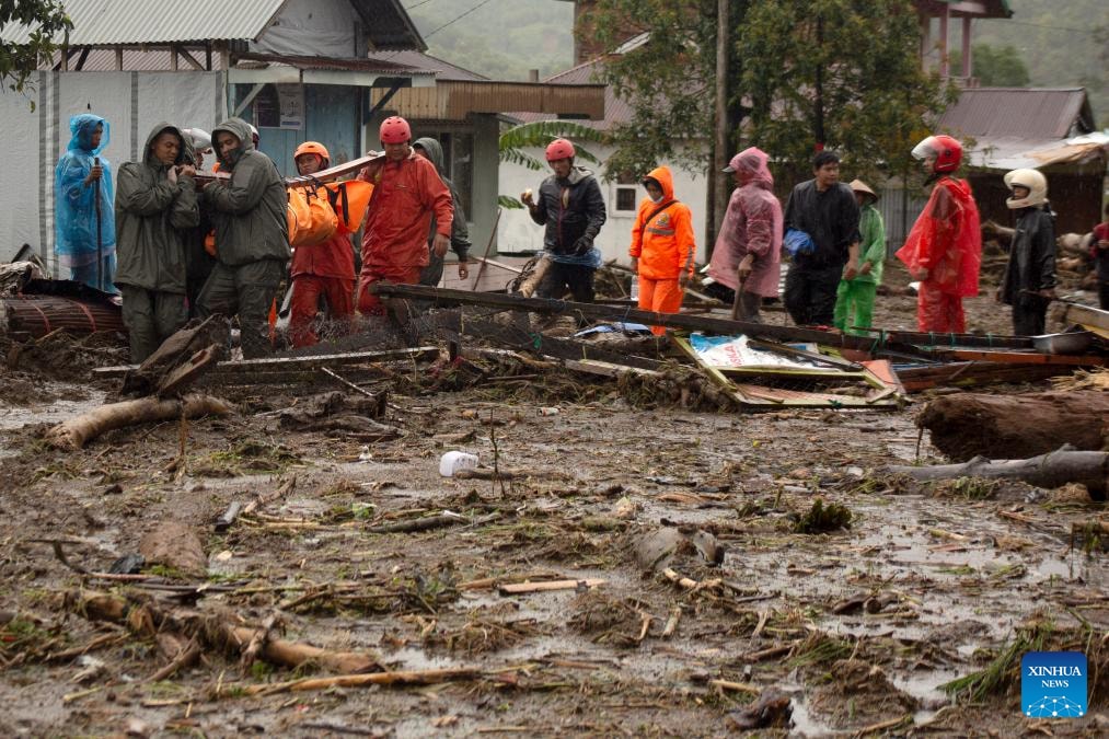 Lực lượng cứu hộ di chuyển thi thể nạn nhân sau trận lũ lụt và sạt lở đất ở Indonesia hồi tháng 11. Ảnh: Tân Hoa xã