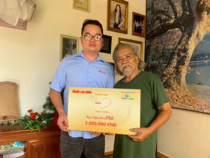 Ngày 30-6, chương trình "Mai Vàng nhân ái" do Báo Người Lao Động tổ chức với sự đồng hành của Ngân hàng TMCP Nam Á đã đến thăm và trao tiền hỗ trợ 5 triệu đồng cho nhạc sĩ A Đũh (xã Đắk La, huyện Đắk Hà, tỉnh Kon Tum).