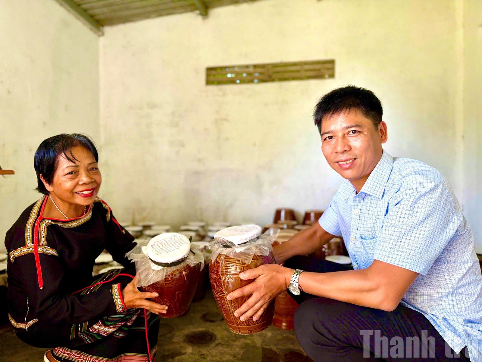 Bà H’Phong Niê khôi phục nghề làm rượu cần truyền thống của người Êđê, phát triển thành thương hiệu Rượu cần Ây Thi, không chỉ phục vụ du lịch mà còn trở thành sản phẩm nông nghiệp đặc trưng của địa phương. Ảnh: NG