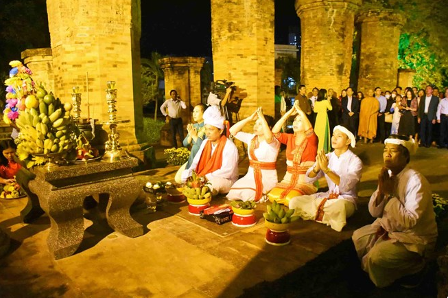 Chương trình nghệ thuật sân khấu bán thực cảnh giới thiệu văn hóa Champa tại Tháp Bà Ponagar, ở Khánh Hòa. Ảnh: Hữu Long