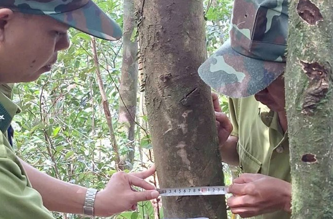Lực lượng Kiểm lâm phát hiện chè rừng cổ thụ, trong đó có giống chè Shan nổi tiếng trên các dãy núi có độ cao trên 1000 mét ở Huế. Ảnh: L. Tuấn.