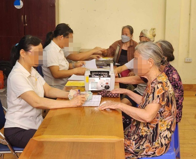 Người dân nhận trợ cấp hưu trí xã hội tại các điểm chi trả. Ảnh: Theo BHXH