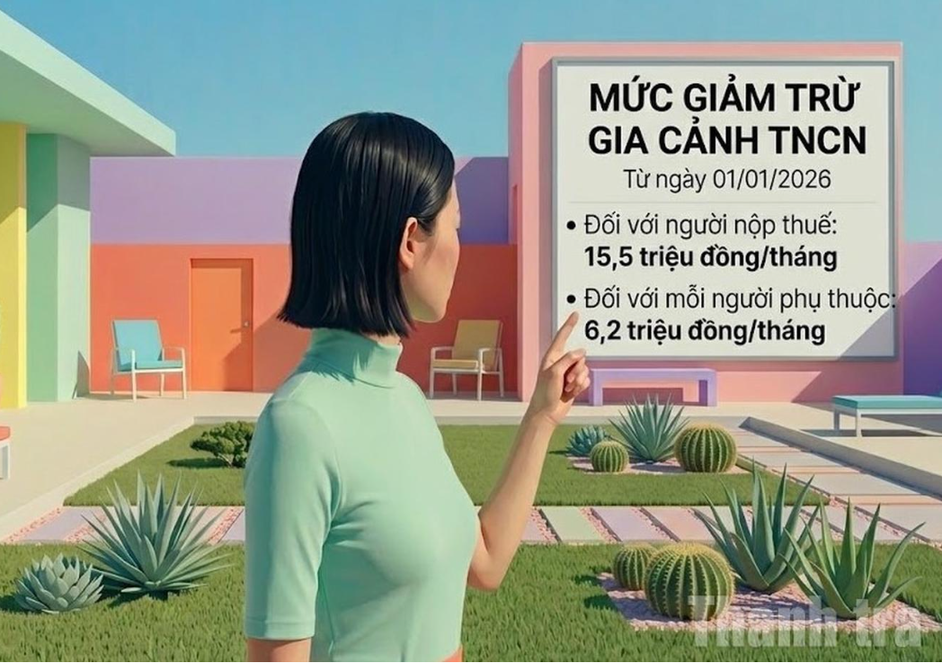 Từ ngày 1/1/2026, mức giảm trừ đối với người nộp thuế là 15,5 triệu đồng/tháng (tương đương 186 triệu đồng/năm). Bên cạnh đó, mức giảm trừ đối với mỗi người phụ thuộc là 6,2 triệu đồng/tháng.